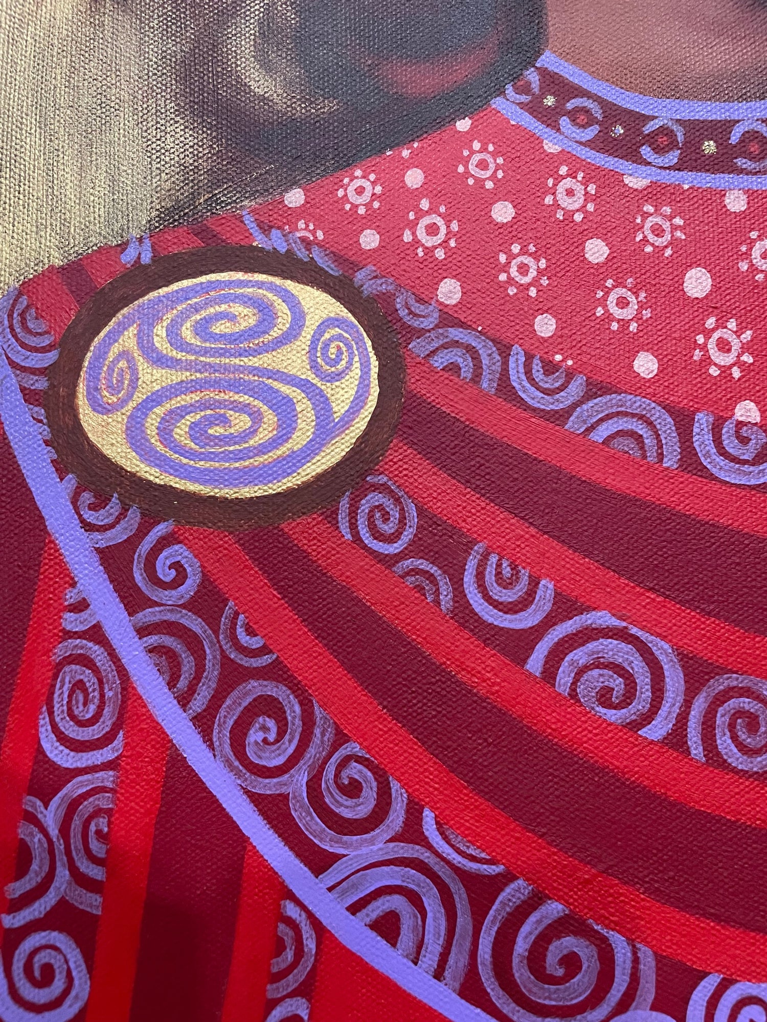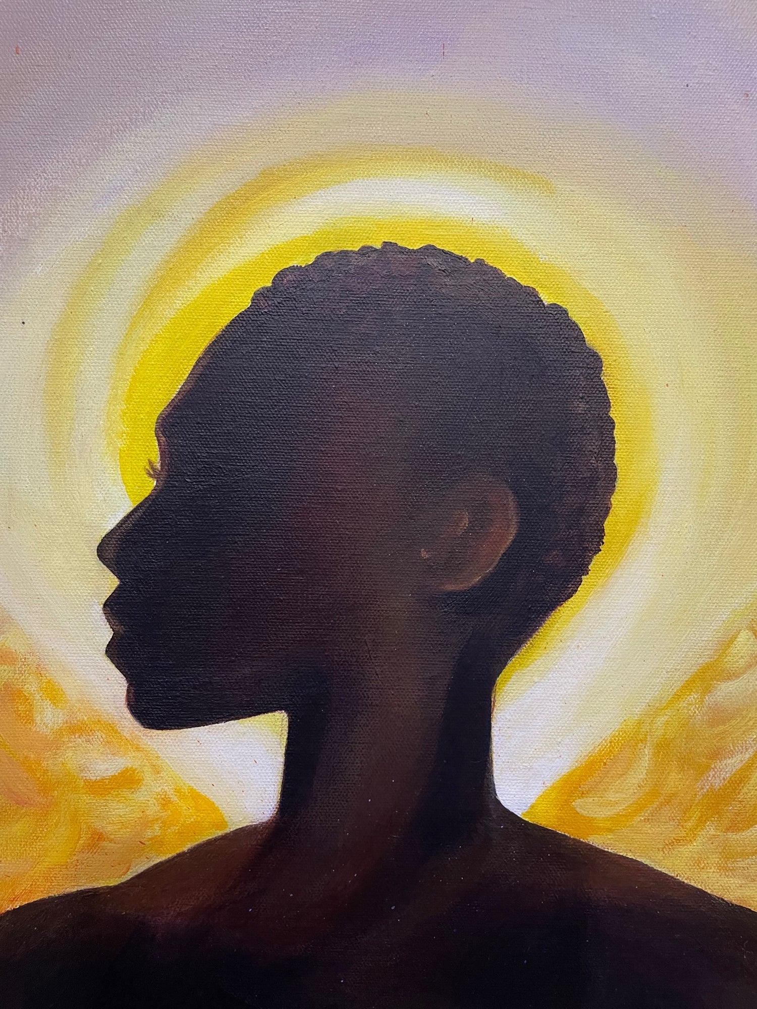 This painting radiates quiet power, blending vivid hues and subtle gestures to evoke memory, movement, and profound emotional resonance.